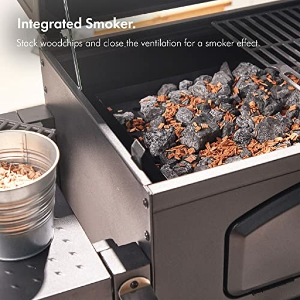 CHARCOAL GRILL & WOOD SMOKER: Use your charcoal BBQ as a regular barbecue or a wood smoker for an American style ‘smoked’ taste. Works great with all types of wood: Oak, Cherry, Apple, Hickory & Maple.